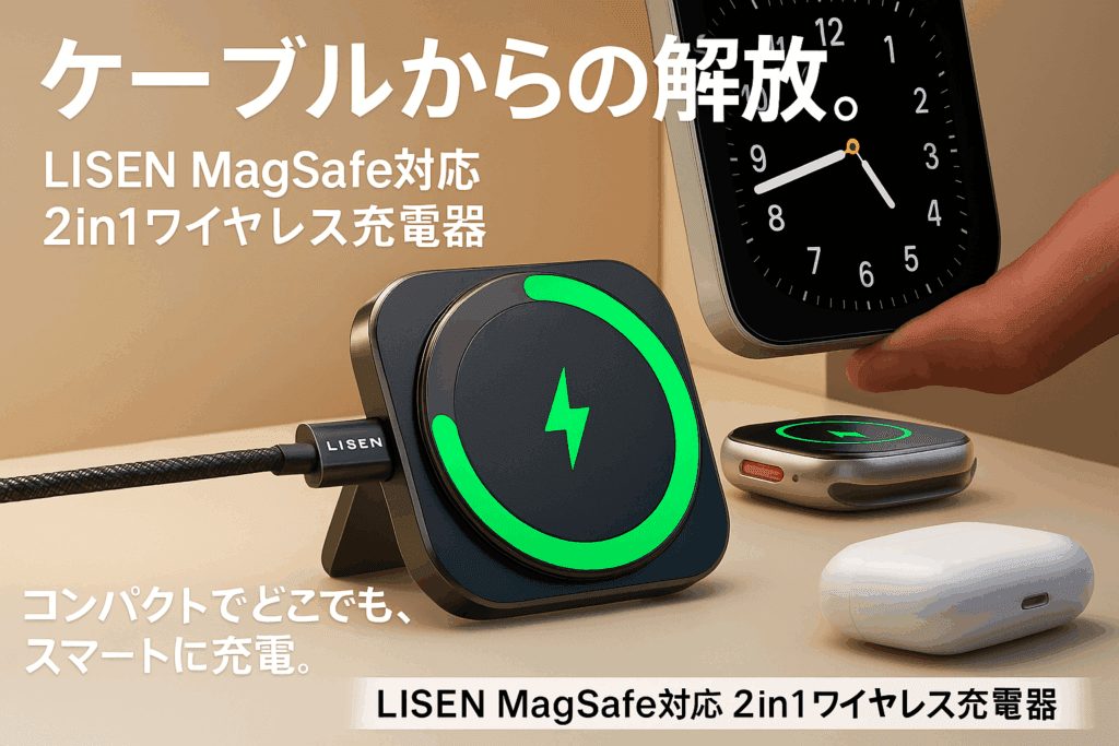 LISEN MagSafe対応 2in1ワイヤレス充電器 極小・軽量で旅行やデスクにも最適![PR]
