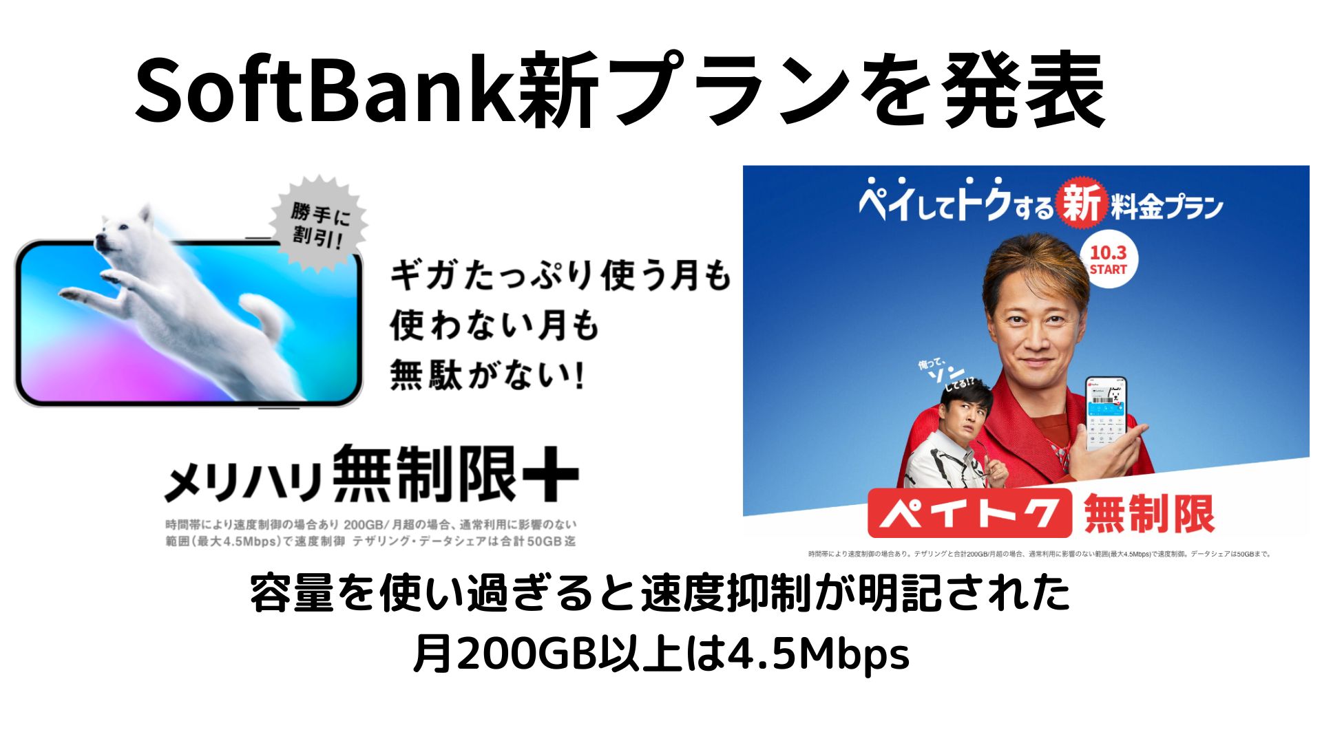 Softbankは「メリハリ無制限+」と「ペイトクプラン」が10月3日に提供を開始する。