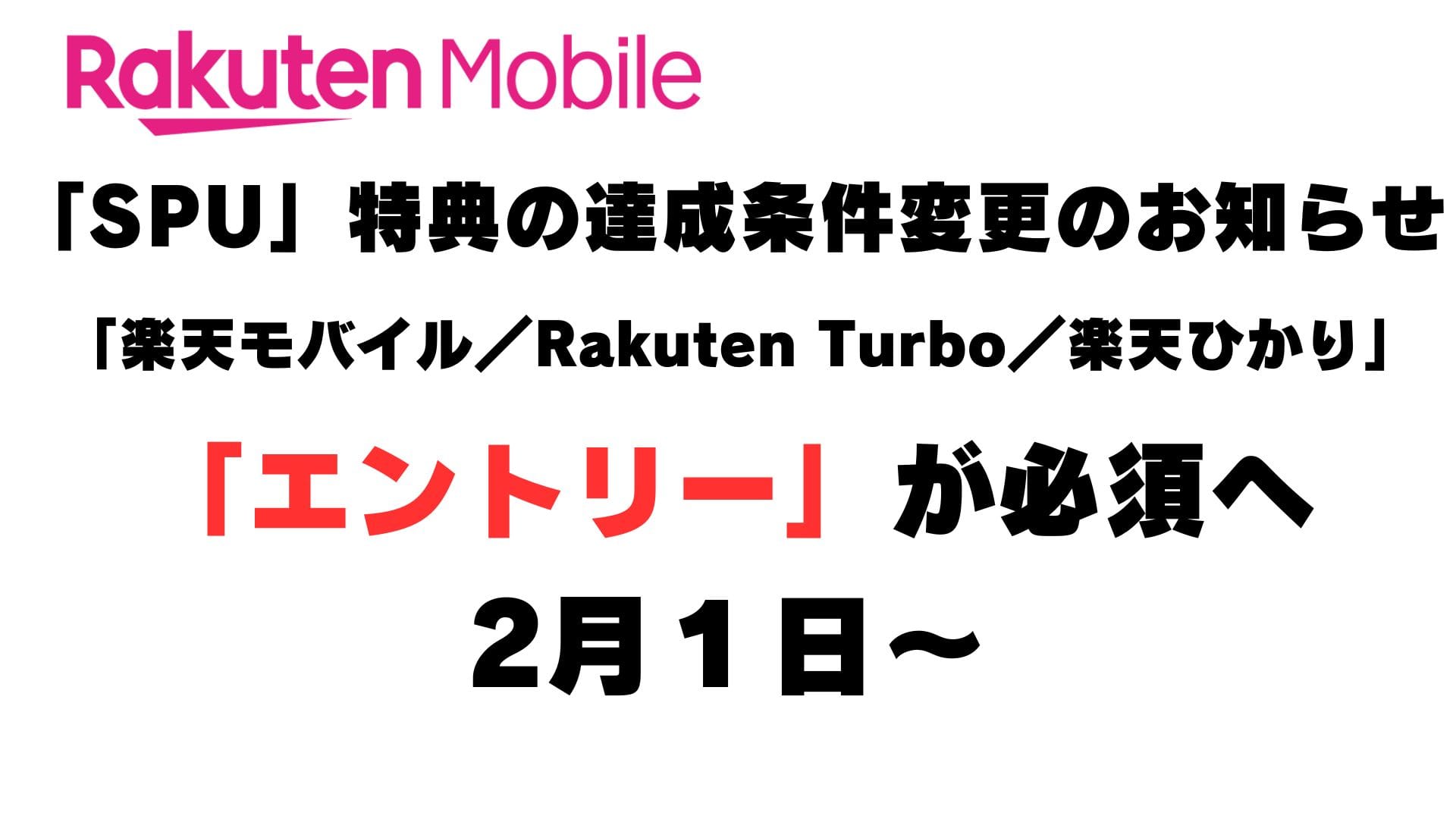 「楽天モバイル」や「楽天モバイルキャリア決算」や「楽天ひかり・Rakuten turbo」は、自動でSPU対象になる変更後は、2月1日よりは、「エントリー」が一度する必要となる。