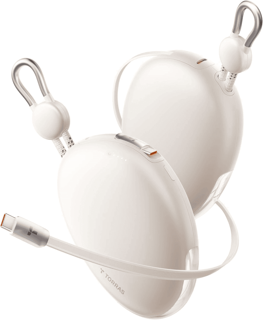 TORRAS FlexLine Pebble は、巻き取り式のUSB-Cケーブル(最大70cm)を内蔵したユニークなモバイルバッテリー。
